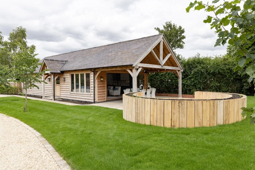 Our lovely clients contacted us just after they had ordered this great looking Oak framed cabin. It was to be sited in the location of an old run down horse stables in the front garden of my client’s converted barn residence.